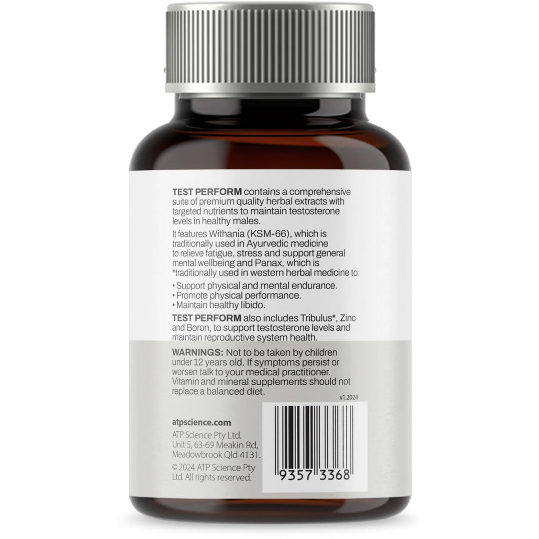 Test Perform doesn't stop there. It packs a punch with Tribulus*, Zinc, and Boron—your allies in supporting testosterone levels and optimal reproductive health. Get ready to unleash your full potential with the ultimate support that gets you on top of your game (mentally AND physically).