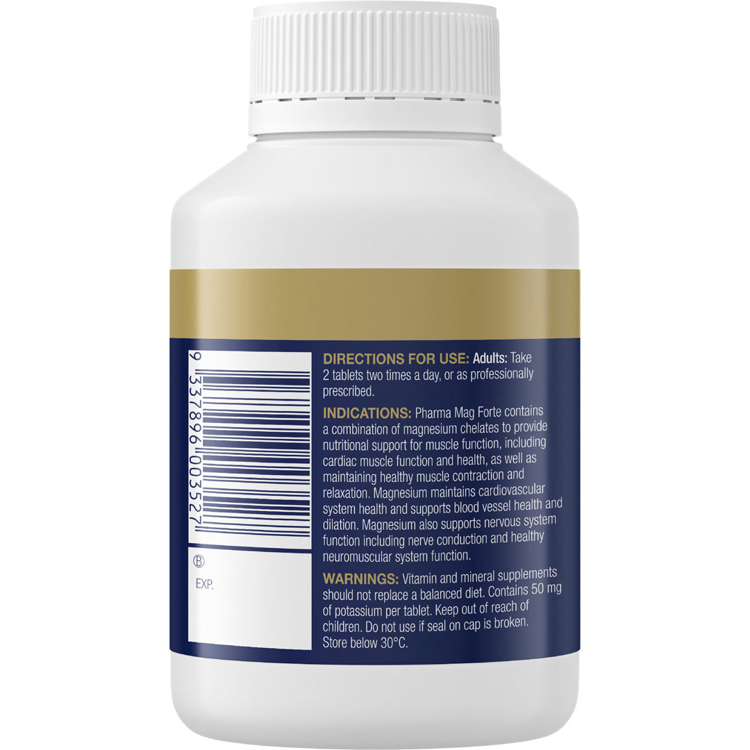 Pharma Mag Forte contains a combination of magnesium chelates to provide nutritional support for muscle function, as well as maintaining healthy muscle contraction and relaxation. Magnesium maintains cardiovascular system health and supports blood vessel health and dilation. Magnesium also supports nervous system function including nerve conduction and healthy neuromuscular system function.