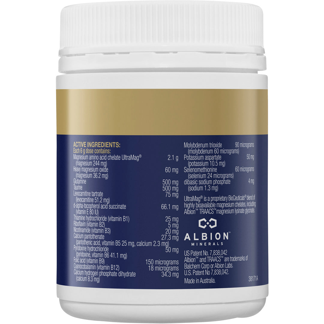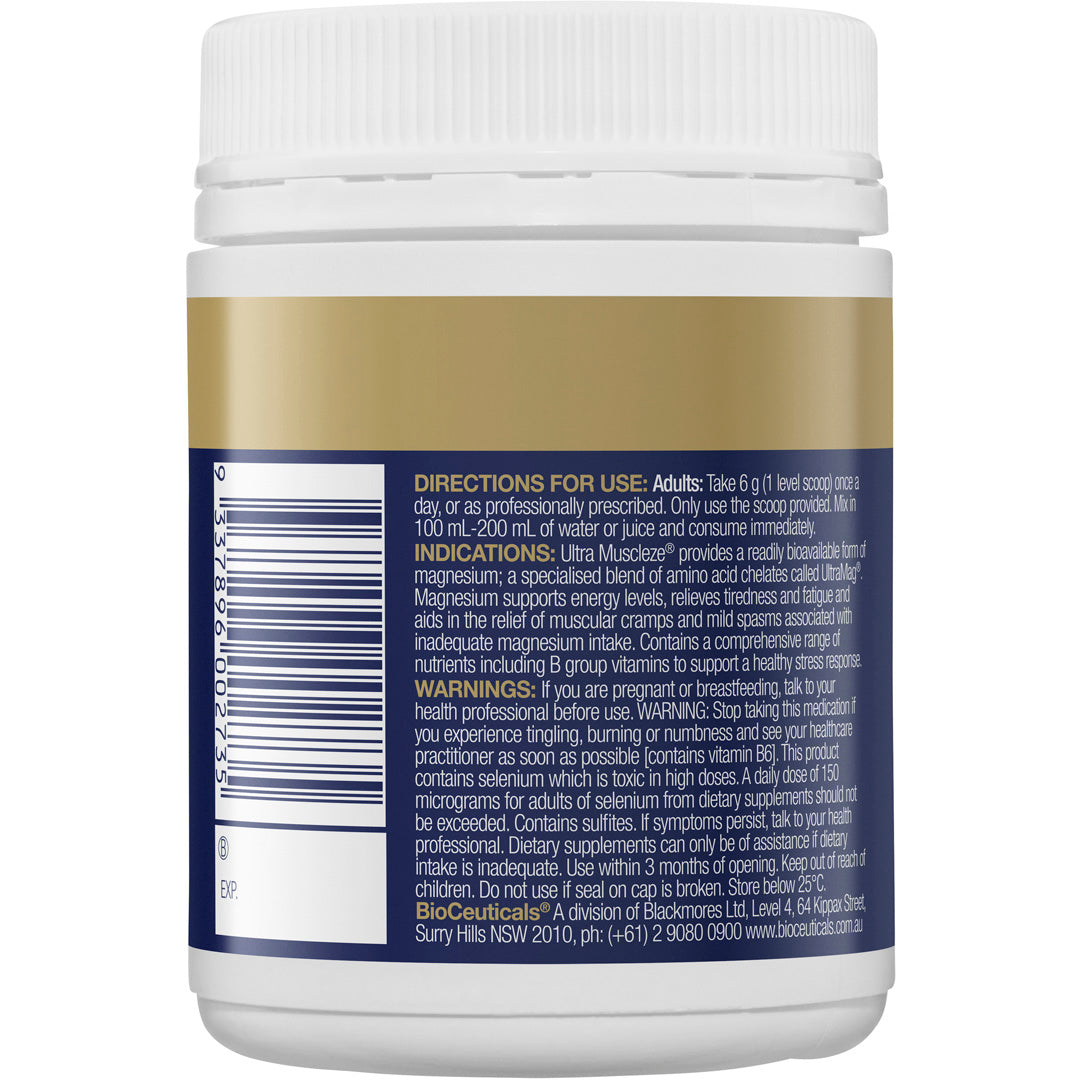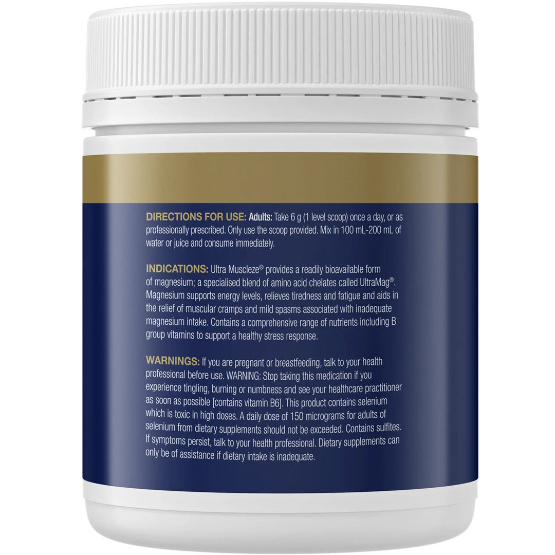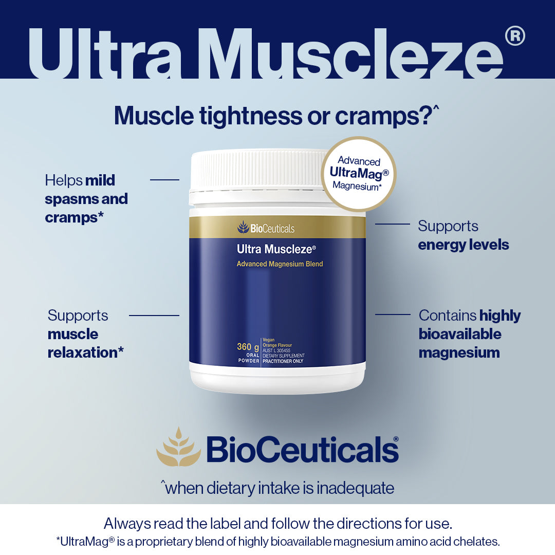 Ultra Muscleze® is a great-tasting, high-dose magnesium powder featuring UltraMag®, a specialised mineral delivery system that enhances absorption and intestinal tolerance of magnesium. Ultra Muscleze® also contains the amino acids carnitine, glutamine and taurine, with B vitamins and other supportive nutrients.
