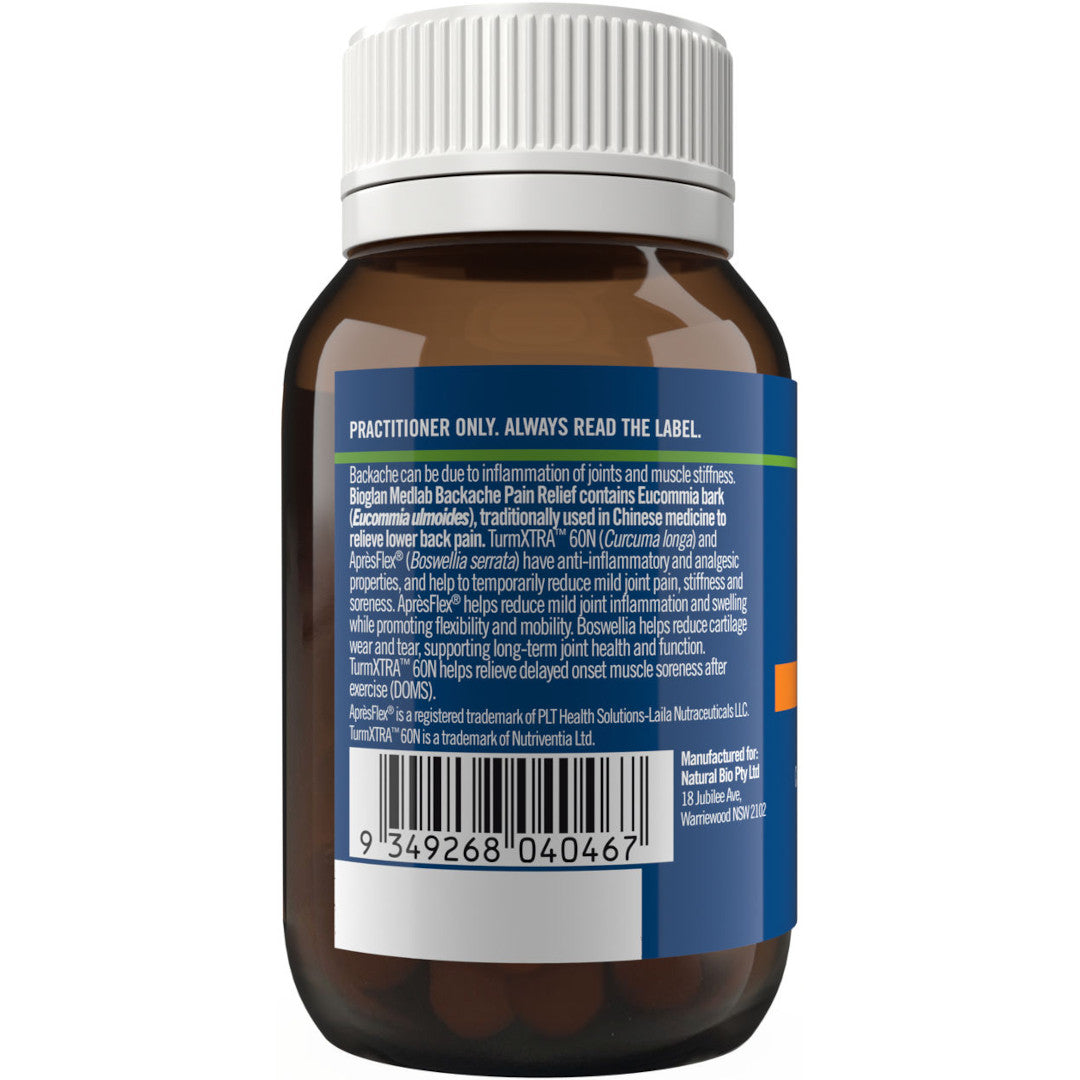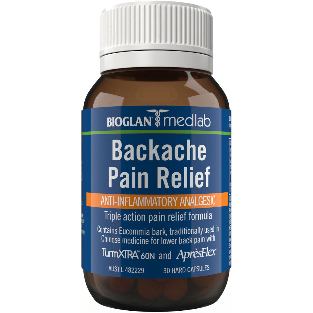 Backache can be due to inflammation of joints and muscle stiffness. Bioglan Medlab Backache Pain Relief contains Eucommia bark (Eucommia ulmoides), traditionally used in Chinese medicine to relieve lower back pain. TurmXTRA™ 60N (Curcuma longa) and AprèsFlex (Boswellia serrata) have anti-inflammatory and analgesic properties, and help to temporarily reduce mild joint pain, stiffness and soreness. AprèsFlex helps reduce mild joint inflammation and swelling while promoting flexibility and mobility. Boswellia helps reduce cartilage wear and tear, supporting long-term joint health and function. TurmXTRA™ 60N helps relieve delayed onset muscle soreness after exercise (DOMS).