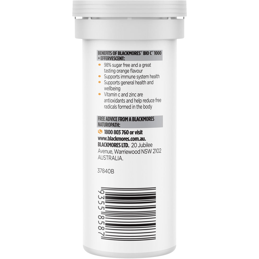 Blackmores Bio C® 1000 + Effervescent is a 98% sugar free formula with echinacea, Zinc and a boost of viamin C to support immune system health and reduce the severity and duration of common cold symptoms.