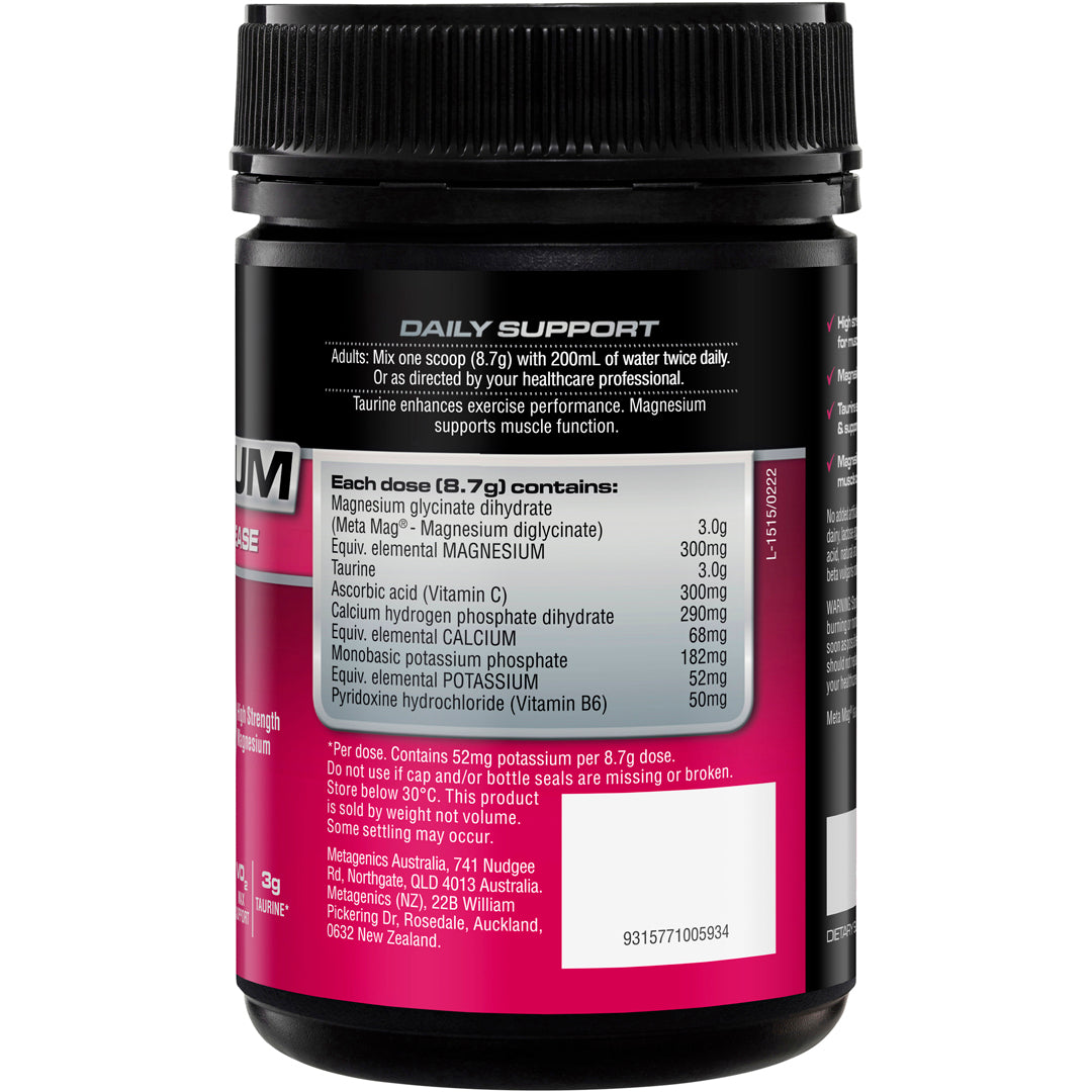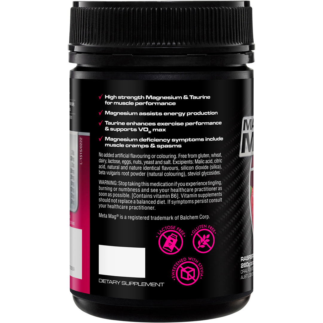 If you are exercising regularly and strenuously you may require additional magnesium. Symptoms that indicate you may be deficient in magnesium include muscle cramps, muscle spasms, muscles that feel weak, feelings of fatigue and an increased susceptibility to stress. Magnesium is a vital nutrient that is involved in many important processes, including energy production. This formula contains a high dose of Meta Mag®, a patented form of magnesium that’s highly absorbable.