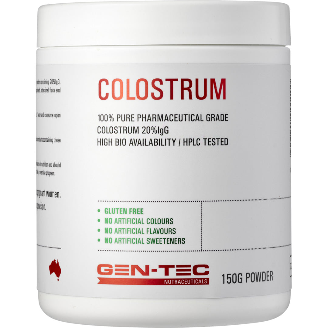 GEN-TEC NUTRACEUTICALS source, blend and package 100% Pure Bovine COLOSTRUM powder containing 20%IgG. COLOSTRUM supplementation is ideal for individuals with a goal of improving gut health, intestinal flora and supporting a healthy immune system.