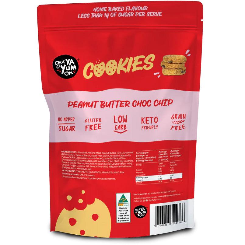 INGREDIENTS: Blanched Almond Meal, Peanut Butter (21%), Erythritol (NON GMO), Tapioca Starch, Sugar Free Dark Chocolate Chips (11%) (Cocoa Solids (cocoa mass, cocoa butter), Soluble Dietary Fibre (Polydextrose), Erythritol, Natural Emulsifiers (Non GMO Soy Lecithin), Natural Vanilla Flavour, Natural Sweetner (Stevia)), Butter (from milk), Organic Virgin Coconut Oil, Peanut Flour (5%) Natural Vanilla Flavour, Xanthan Gum, Himalayan salt