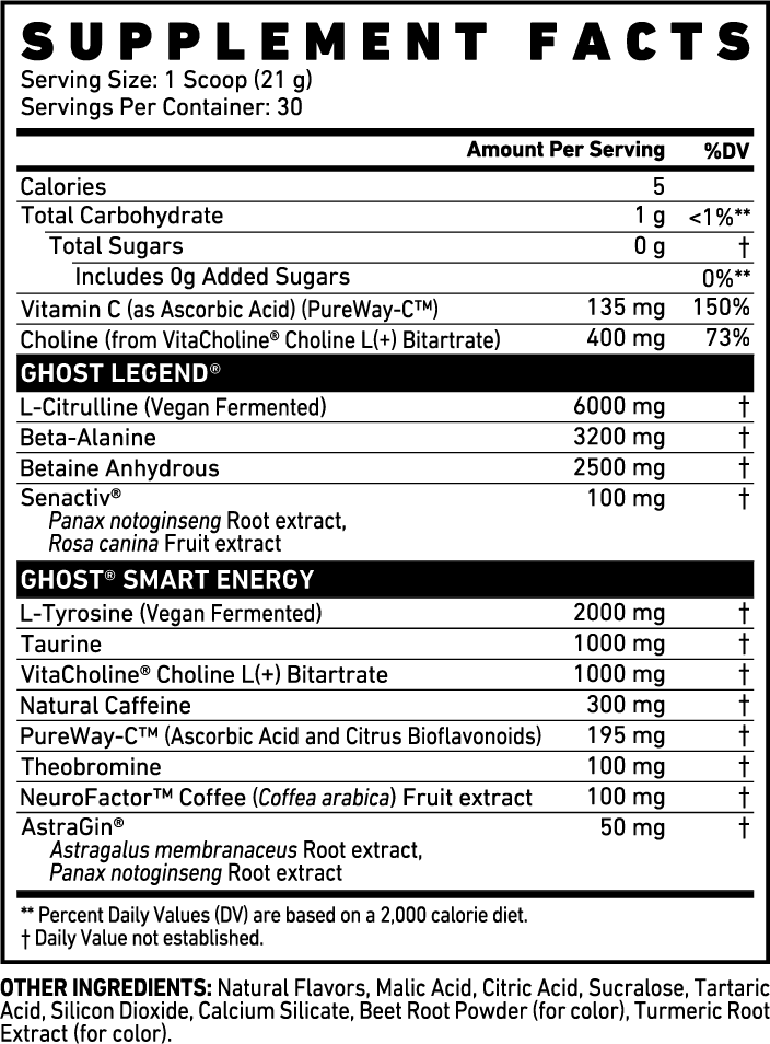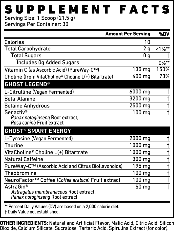 †Compared to original GHOST LEGEND® pre-workout formula.