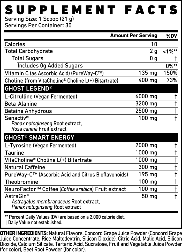 Mix 1 scoop (1 serving) of GHOST LEGEND® with 8-10oz of water or beverage of choice. Vary amount of liquid to taste. Start with 1/2 scoop to assess your tolerance. Consume prior to exercise on training days.