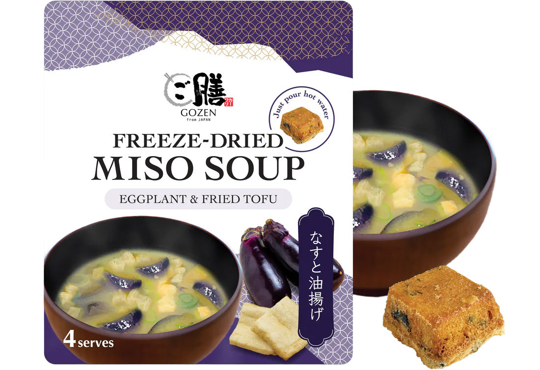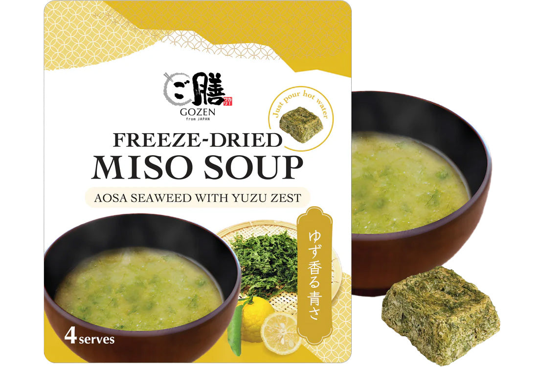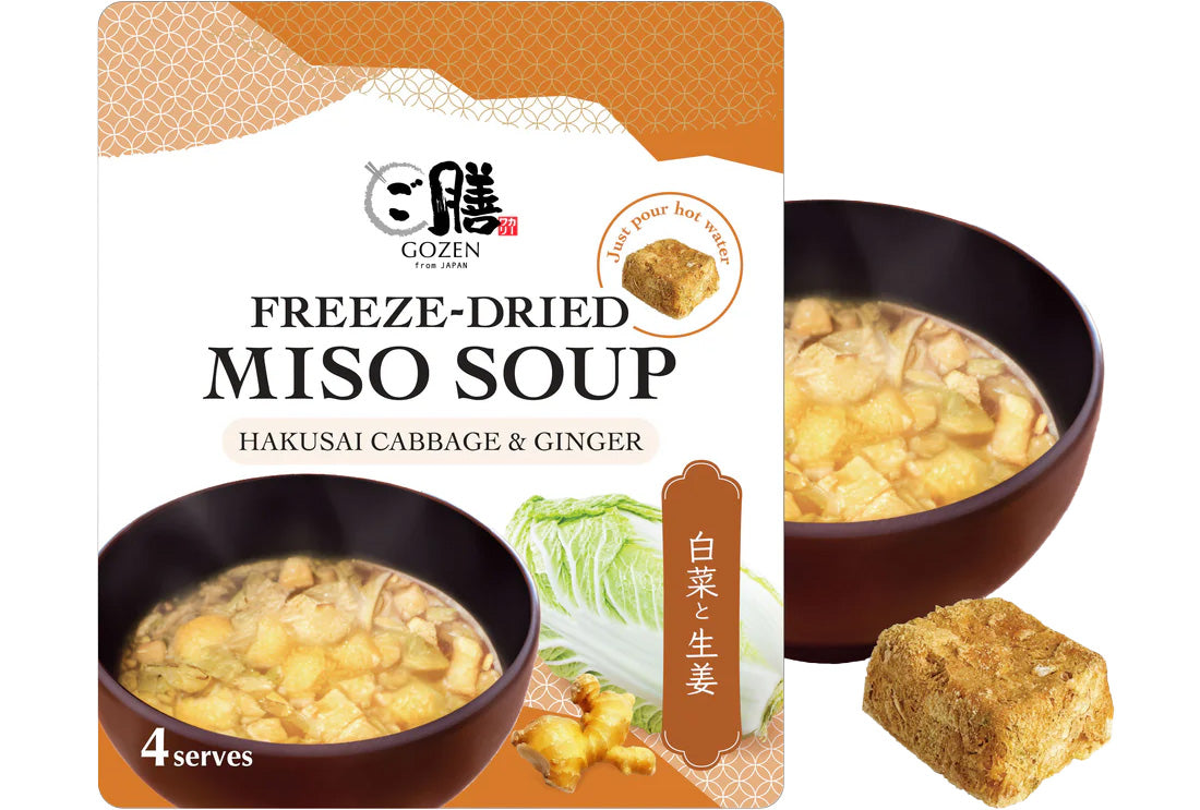GOZEN Freeze-Dried Miso Soup is a beautiful harmony of chunky Japanese vegetables and Dashi stock.