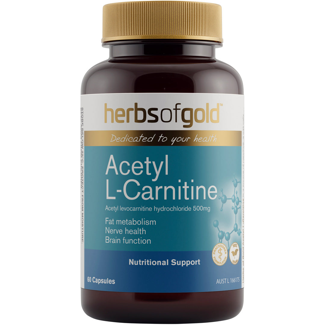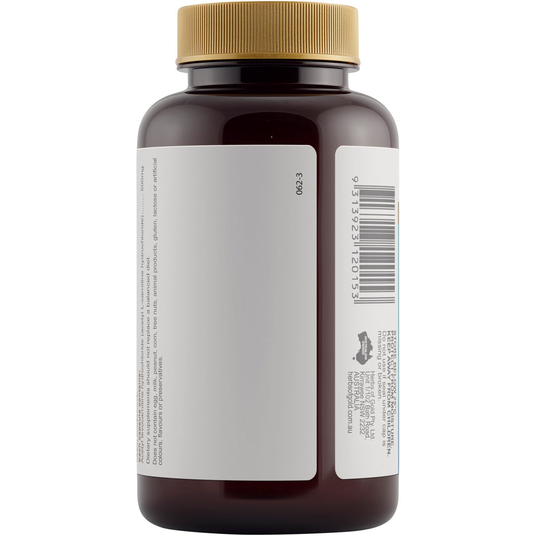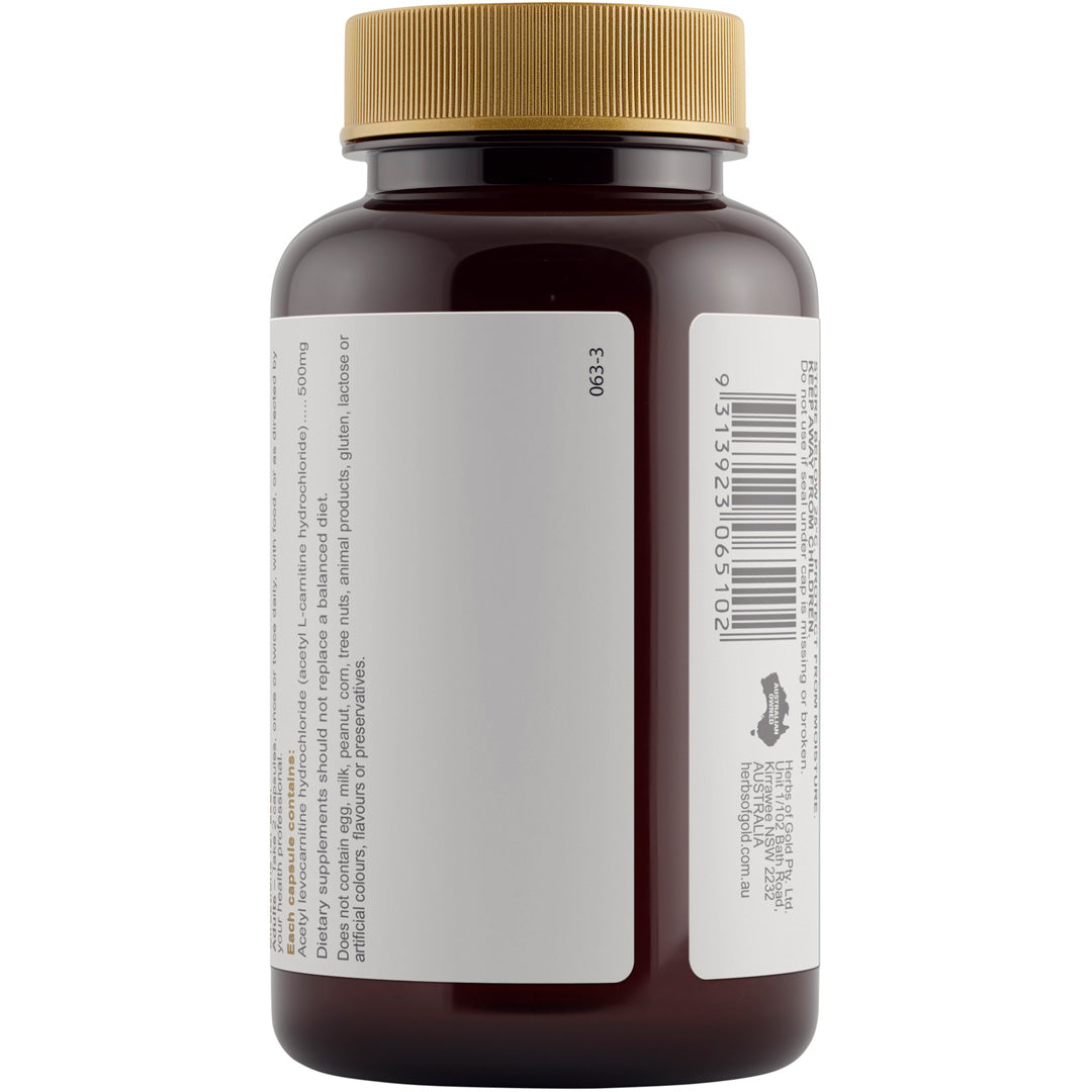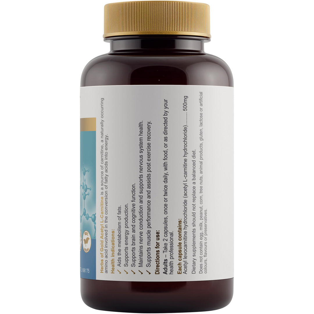 Herbs of Gold Acetyl L-Carnitine contains 500mg of carnitine, an amino acid that supports energy production and muscle performance.