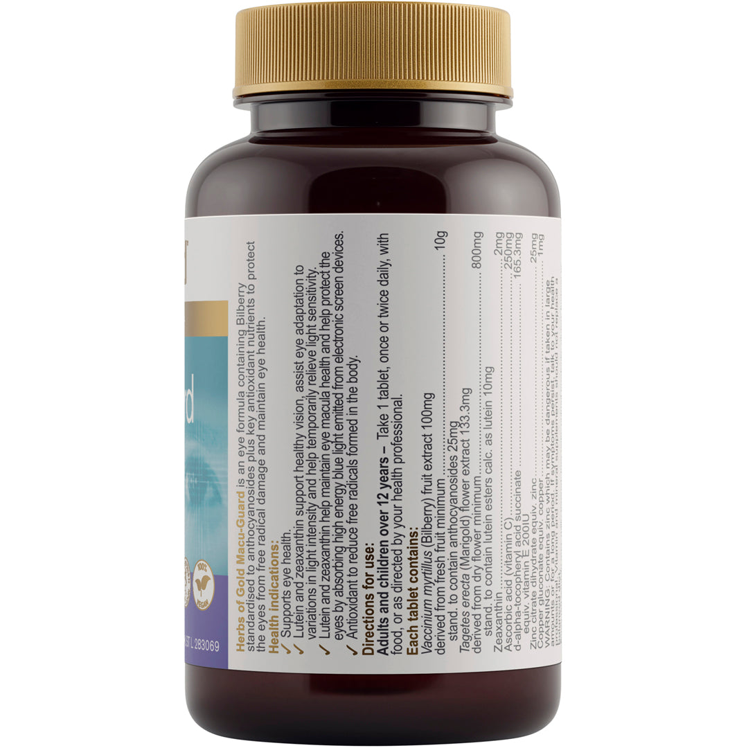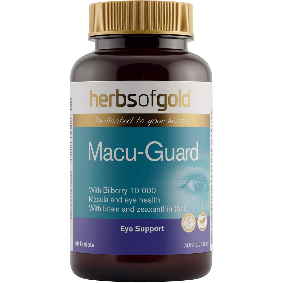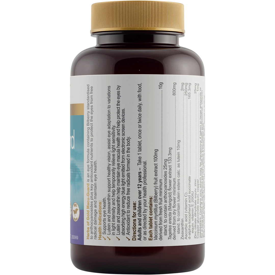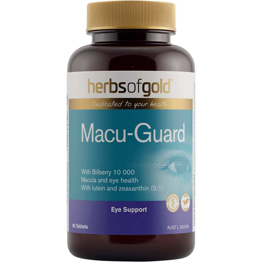 - Macu-Guard is a unique formula that contains 10g of Bilberry standardised to contain 25mg of anthocyanosides to maintain eye health.