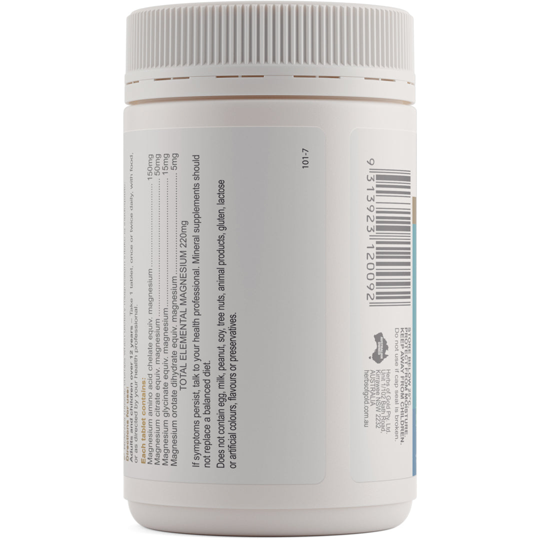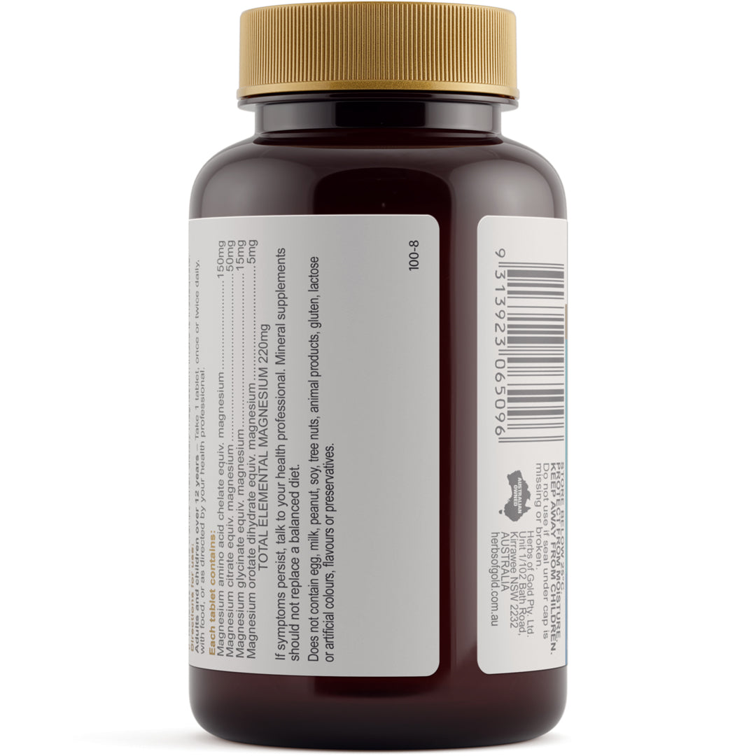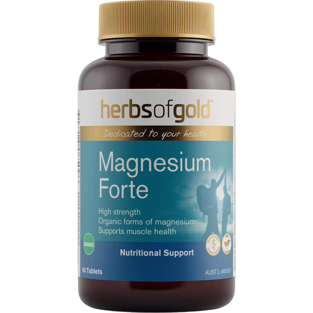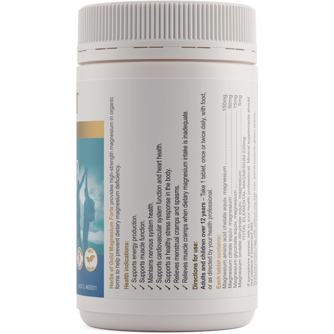 Herbs of Gold Magnesium Forte contains four organic forms of magnesium that are well absorbed in the body to support healthy muscle contraction function and bone health.