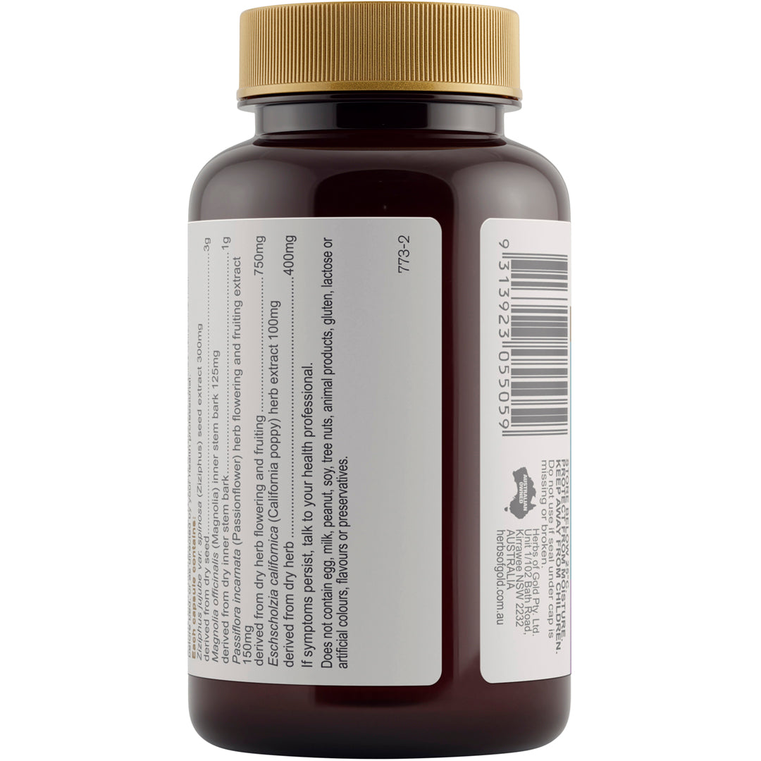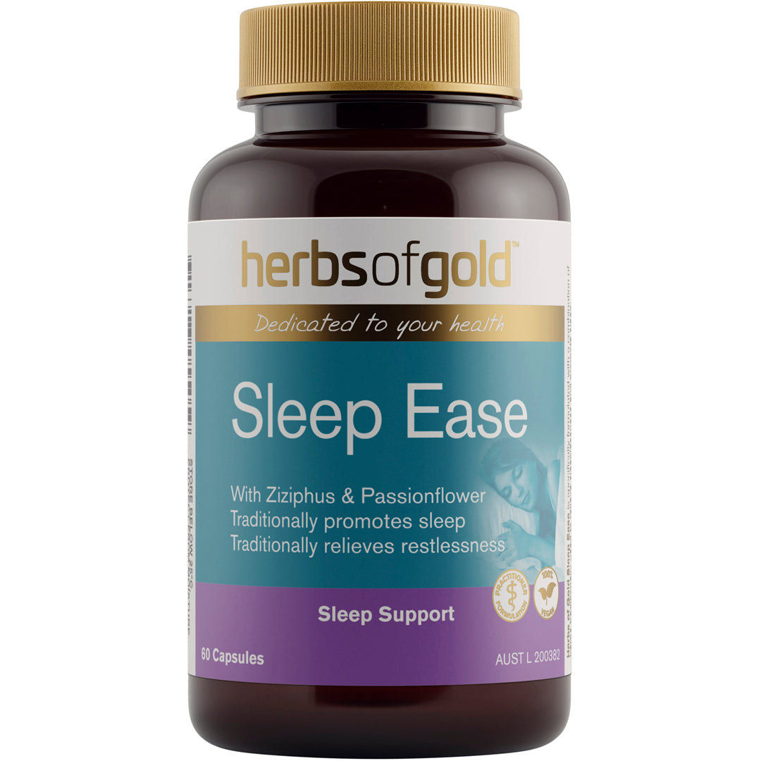 Herbs of Gold Sleep Ease contains herbs traditionally used in Western herbal medicine to promote sleep.