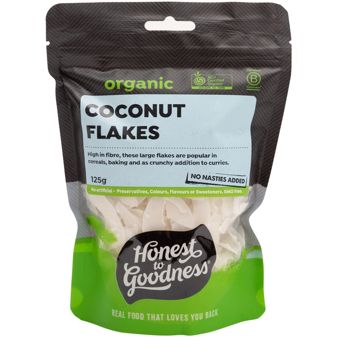 Our Organic Coconut Flakes retain all their natural flavour and aroma made simply from dried and flaked organic coconut flesh. High in fibre, these large flakes are popular in cereals, muesli and baking.