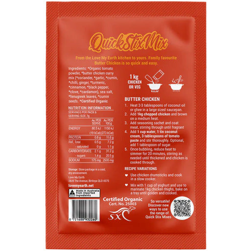 Butter Chicken Quick Stix Mix 45g - organic recipe base & seasoning