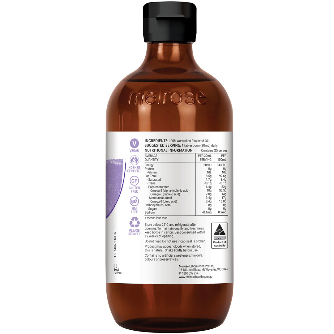 Melrose Australian Flaxseed Oil has a creamy, nutty and slightly bitter taste.