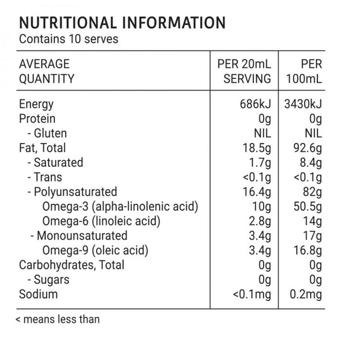 Can be taken straight, mixed into smoothies, added to salad dressings, dips or drizzled over vegetables or your favourite breakfast.