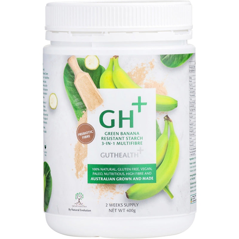 GH+ Green Banana Resistant Starch 3-in-1 Multifibre is the richest natural source of Resistant Starch on Earth. Naturally containing three essential fibres insoluble fibre, soluble fibre and fermentable fibre. Natural Evolution Green Banana Resistant Starch 3-in-1 Multifibre is rich in magnesium, potassium and zinc.