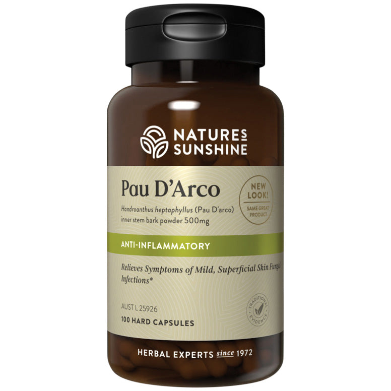 • Nature’s Sunshine Pau D’arco is sustainably sourced from Brazil in South America and uses the inner stem bark from the violet-flowered tree, reported to contain the most medicinal benefits.