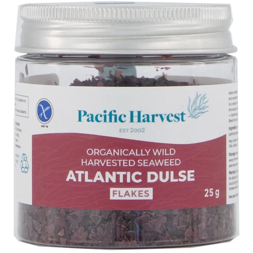 Nutritious Dulse adds a unique smoky flavour and beautiful crimson colour to a variety of dishes. Try with eggs, savoury baking, potatoes, poke bowls. Popular in smoothies. Sprinkle into soups, stews and stir fries.