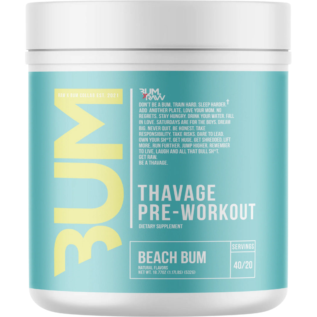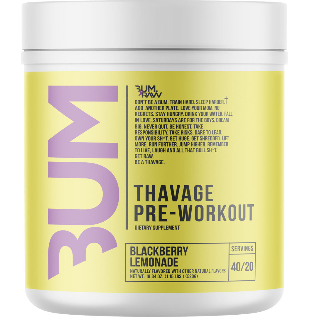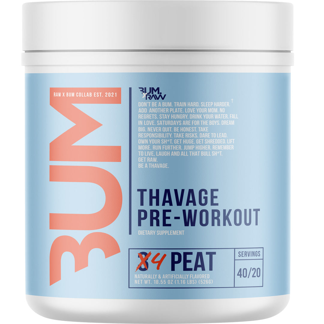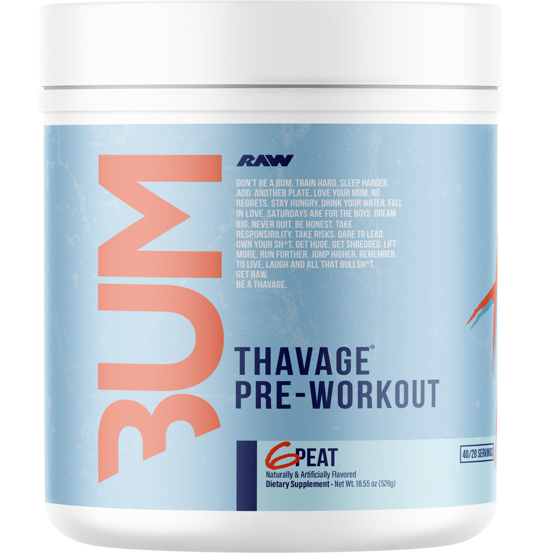 Thavage Pre is not your run of the mill pre-workout. It was designed by thavages, for thavages. One serving is all it takes to flip the switch as you unlock a new level of performance. From superhuman strength to undaunted endurance, one serving does it all. 3x Mr. Olympia Chris Bumstead personally designed both this fully loaded pre-training formula to help you build a legacy of your own.