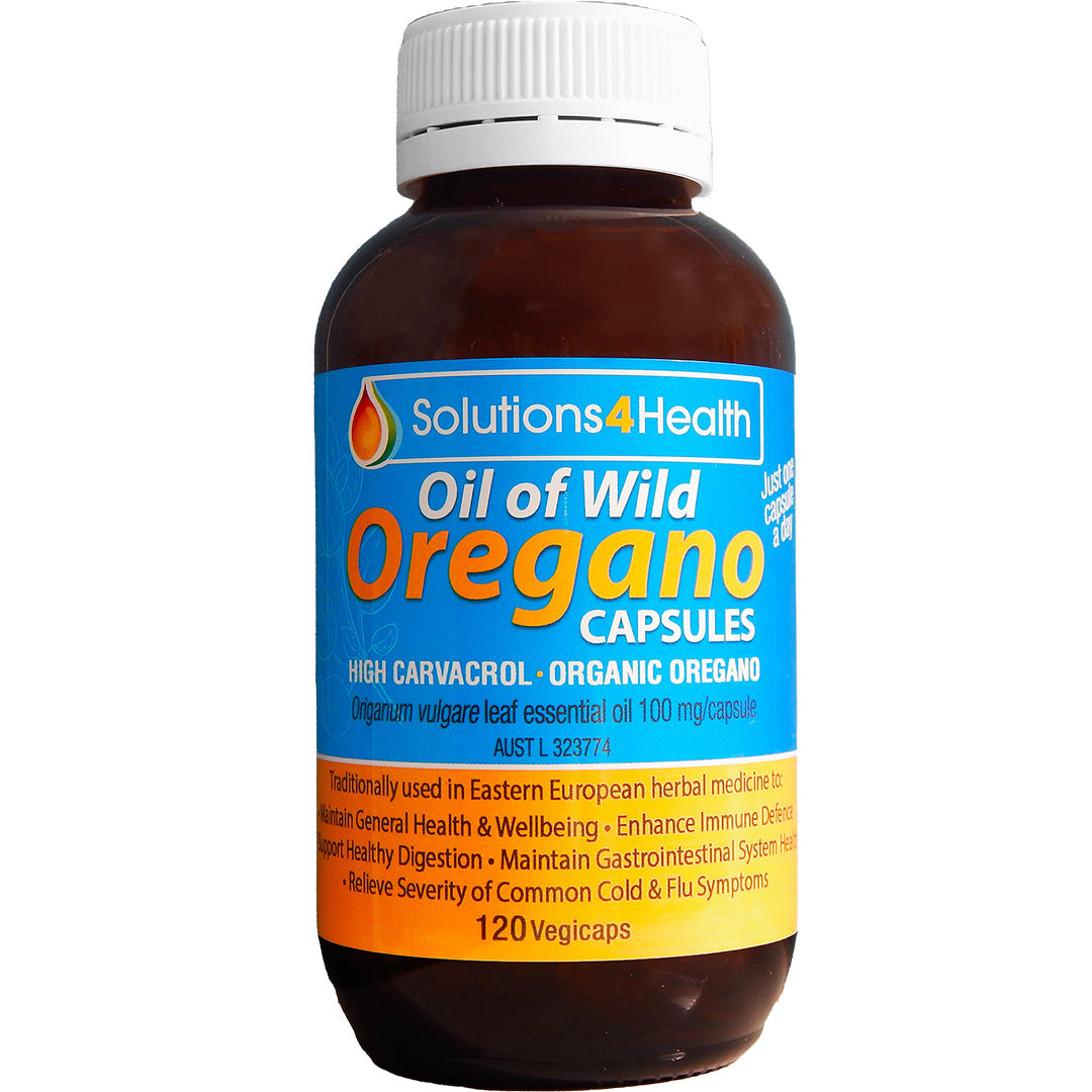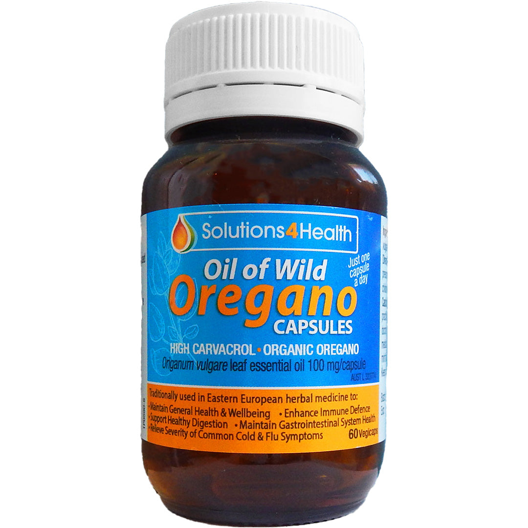 Solutions4health Oil of Wild Oregano for ease of internal use, is brought to you in vegan Vegicaps. Solutions4Health Oil of Wild Oregano is produced using ECOCERT Certified Organic Wild Oregano (Origanum Vulgare), hand picked in the pristine Mediterranean wilderness and Certified Organic Extra Virgin Olive Oil from Australian produced olives. Oil of Wild Oregano is alcohol free and made in Australia produced under strict manufacturing and quality control conditions. Each bottle contains 60 Vegicaps.