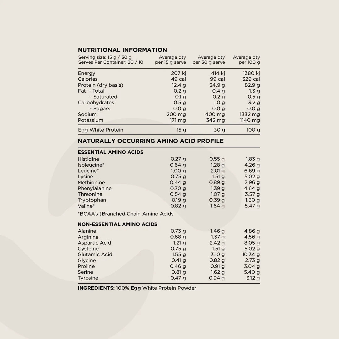 Our Egg White Protein is one of the most complete and bioavailable protein sources available - perfect for optimising muscle growth, recovery, and overall health.