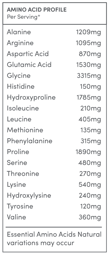 15 grams of Hydrolysed Collagen Peptides infused with a powerful blend of collagen-stimulating nutrients per serving.