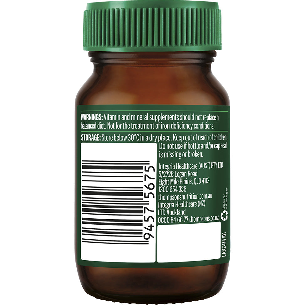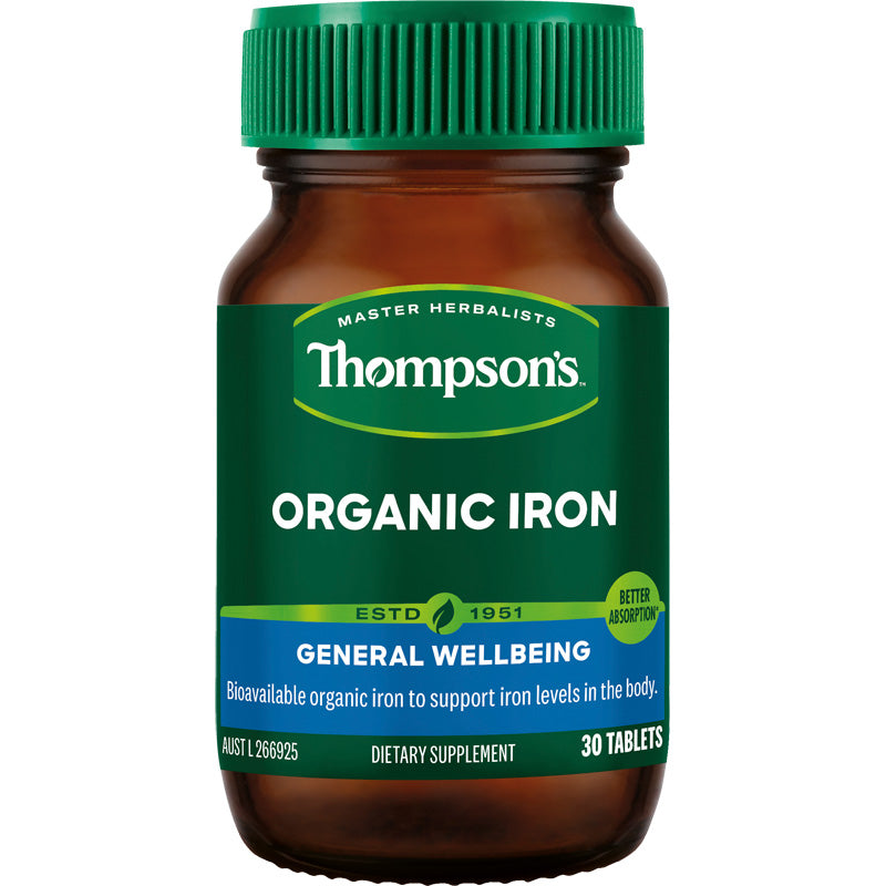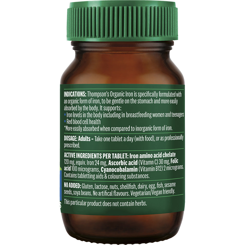 Thompsons Organic Iron is specifically formulated with an organic form of iron, to be gentle on the stomach and bioavailable for ease of absorption. It supports: